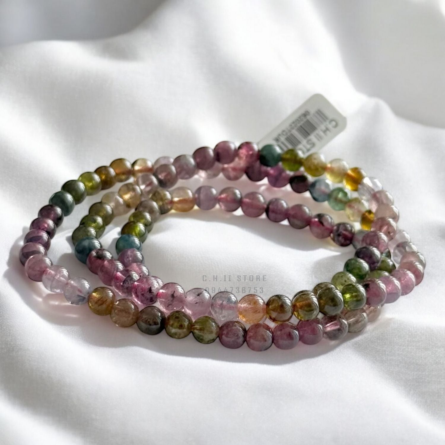 Sản phẩm kèm hộp, hạt dư (nếu có từ vòng chuẩn sau khi xỏ lại vòng theo tay khách) + 2 dây dự phòng (có đầu xỏ) + hướng dẫn sử dụng.