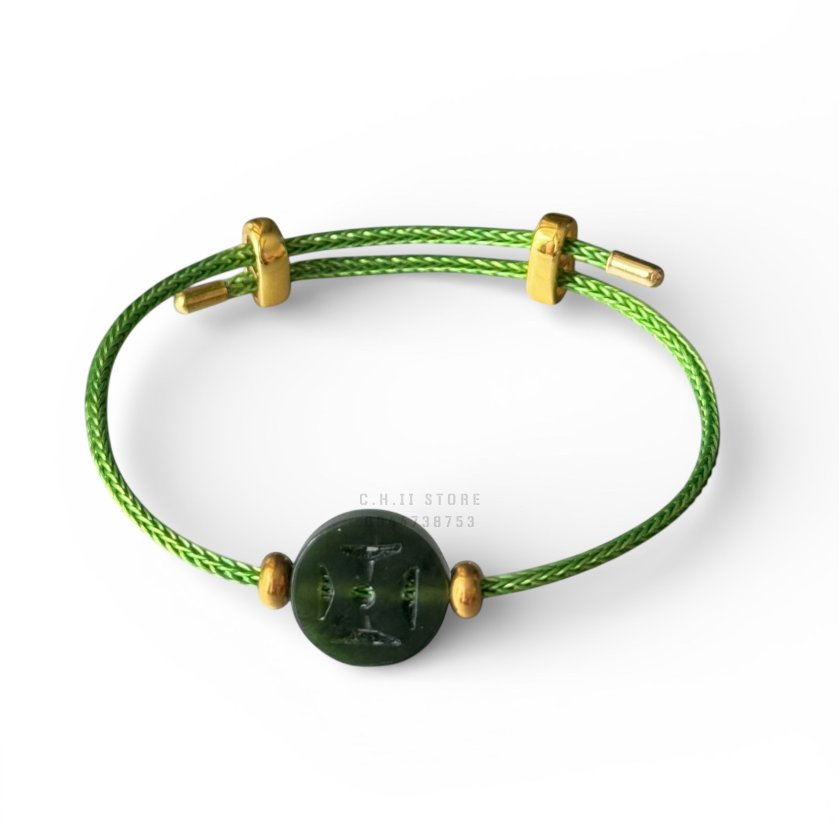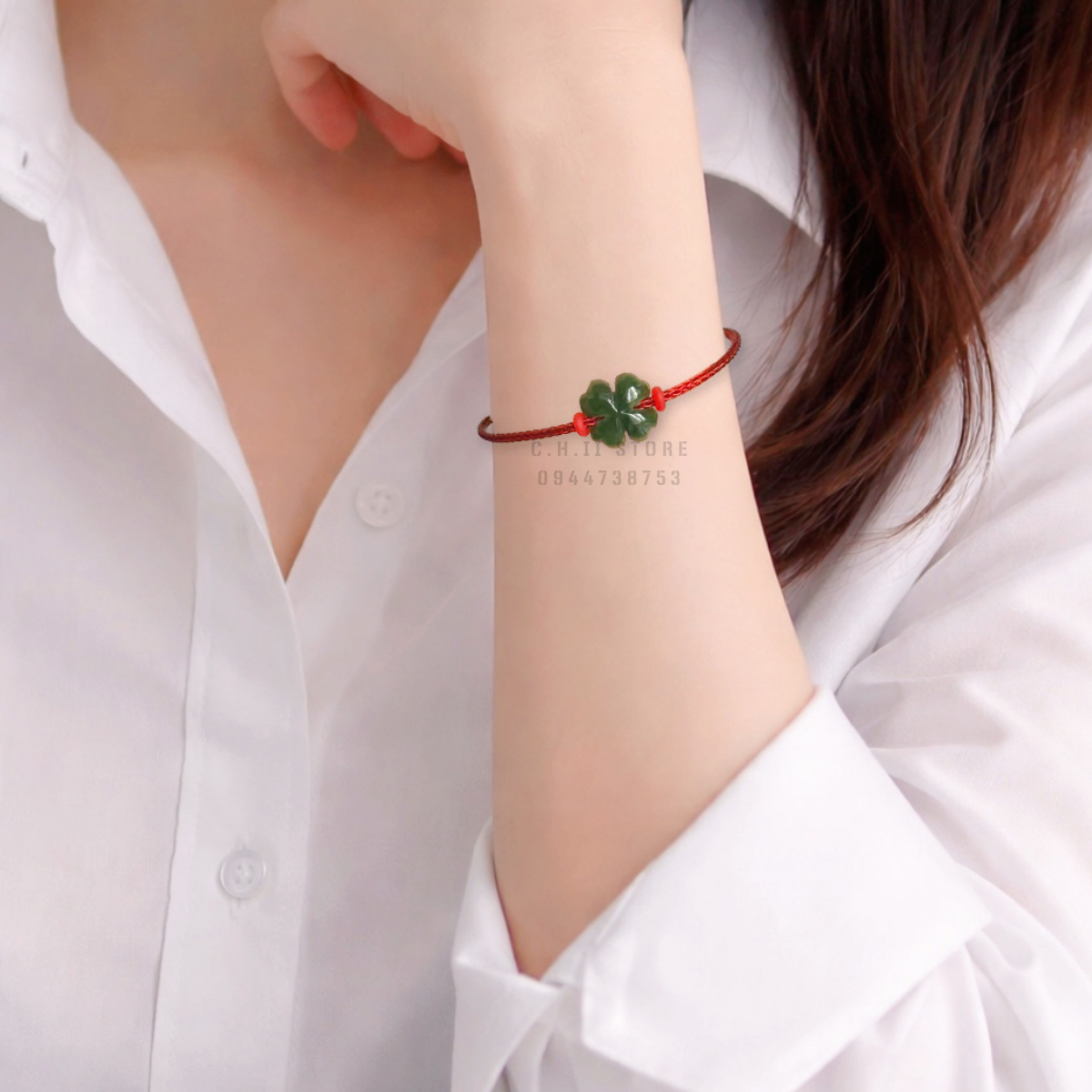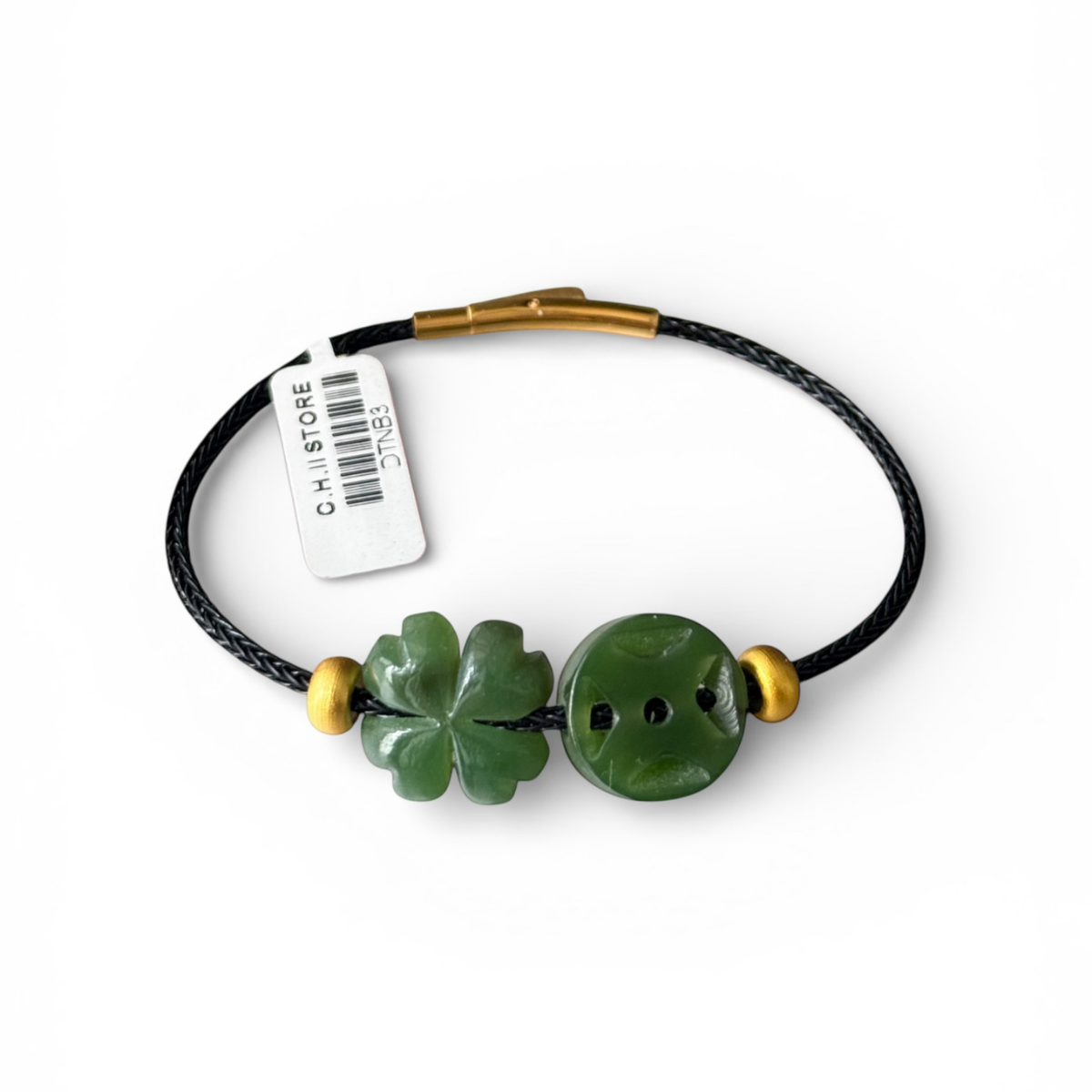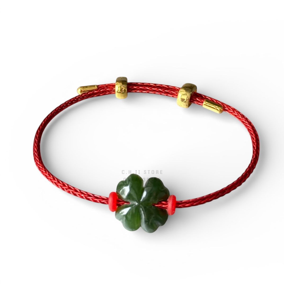 Dây đeo tay cỏ 4 lá và xu kim tiền ngọc bích