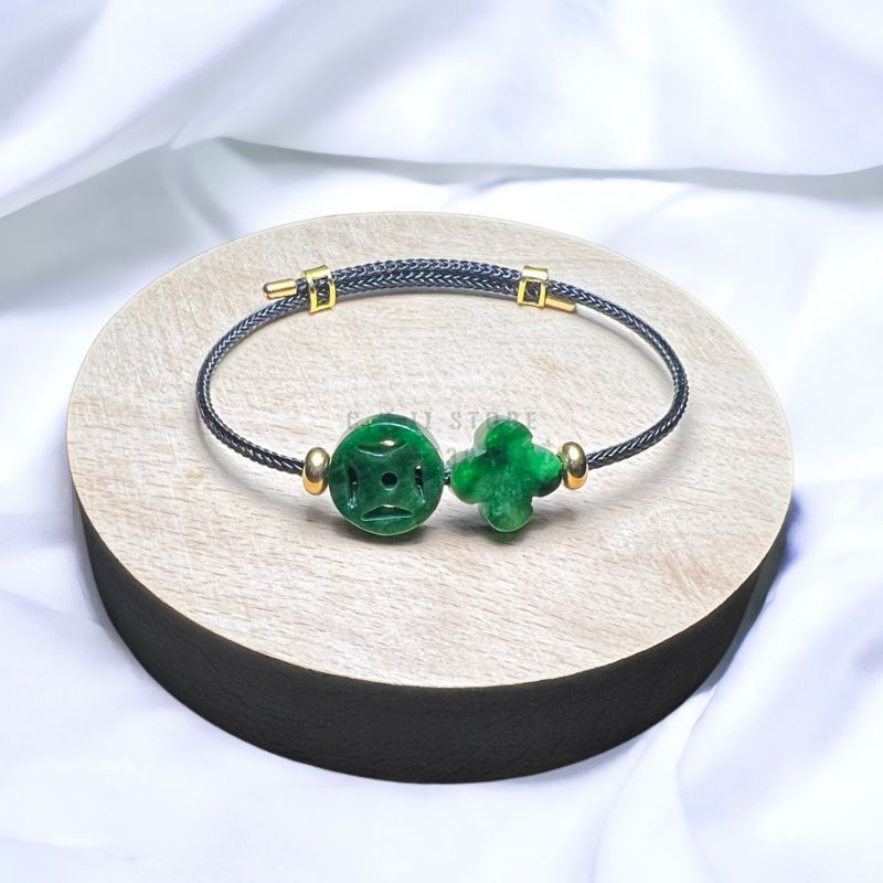 - Mặt cỏ 4 lá và đồng xu kim tiền đá ngọc sơn thủy/ cẩm thạch sơn thủy tự nhiên