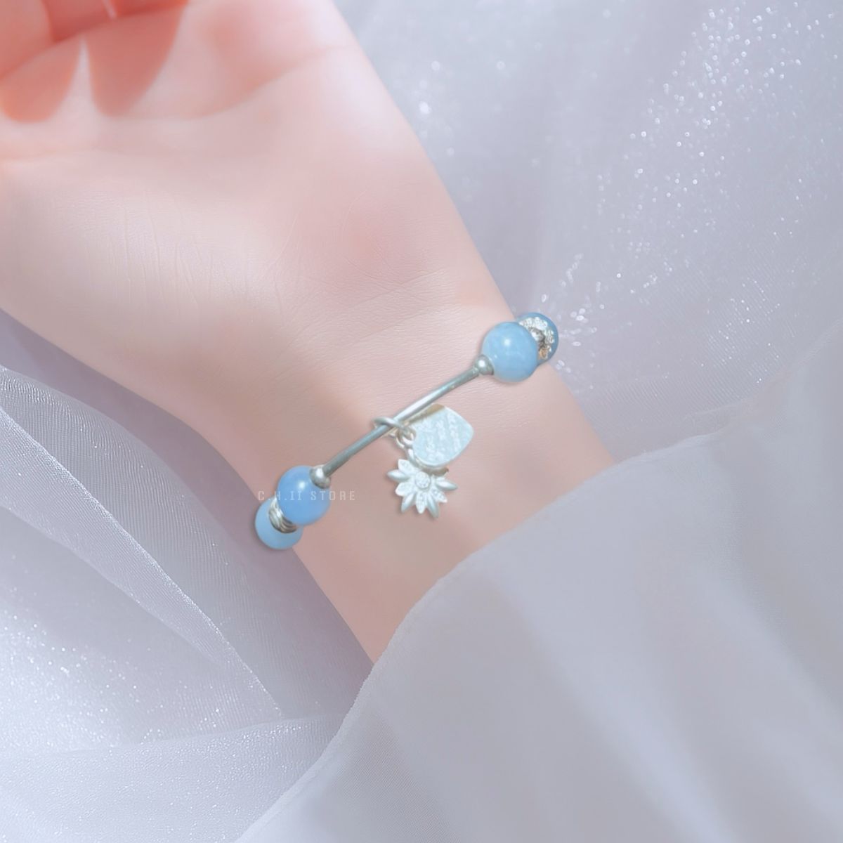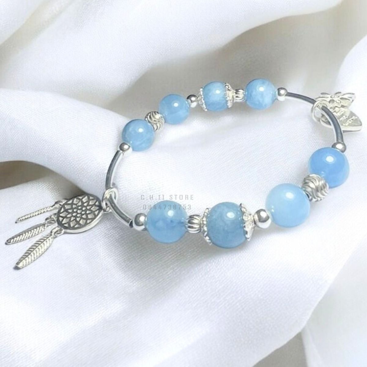 Vòng đá aquamarine mix bạc 925