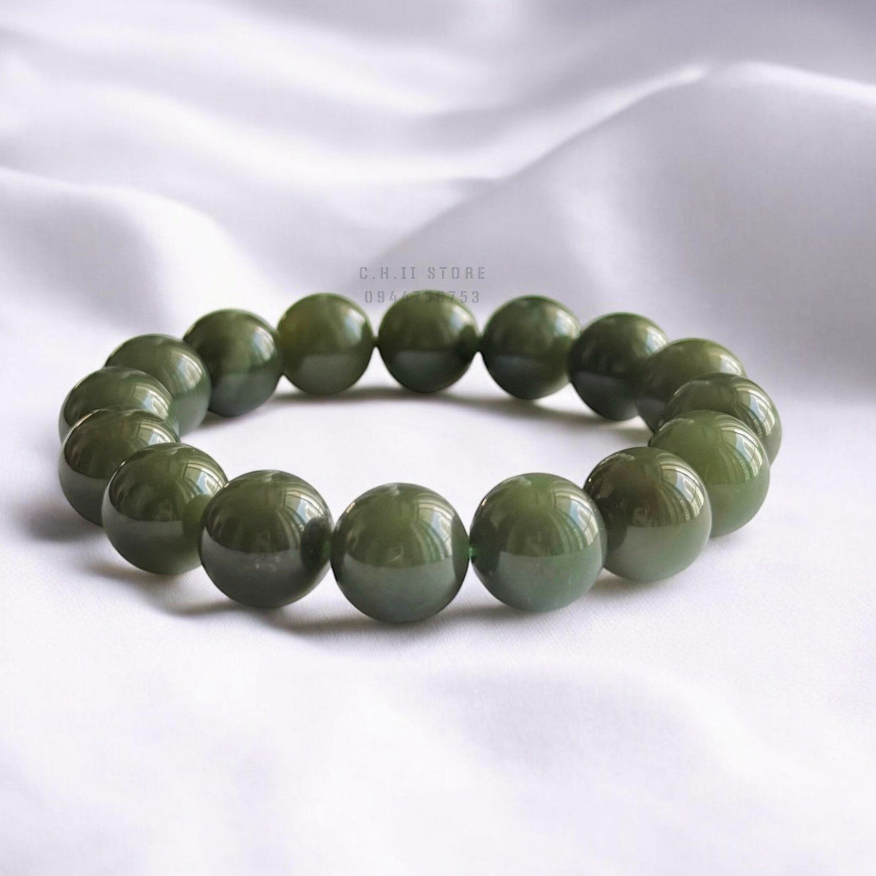 Vòng tay ngọc bích Hòa Điền (Size nam)